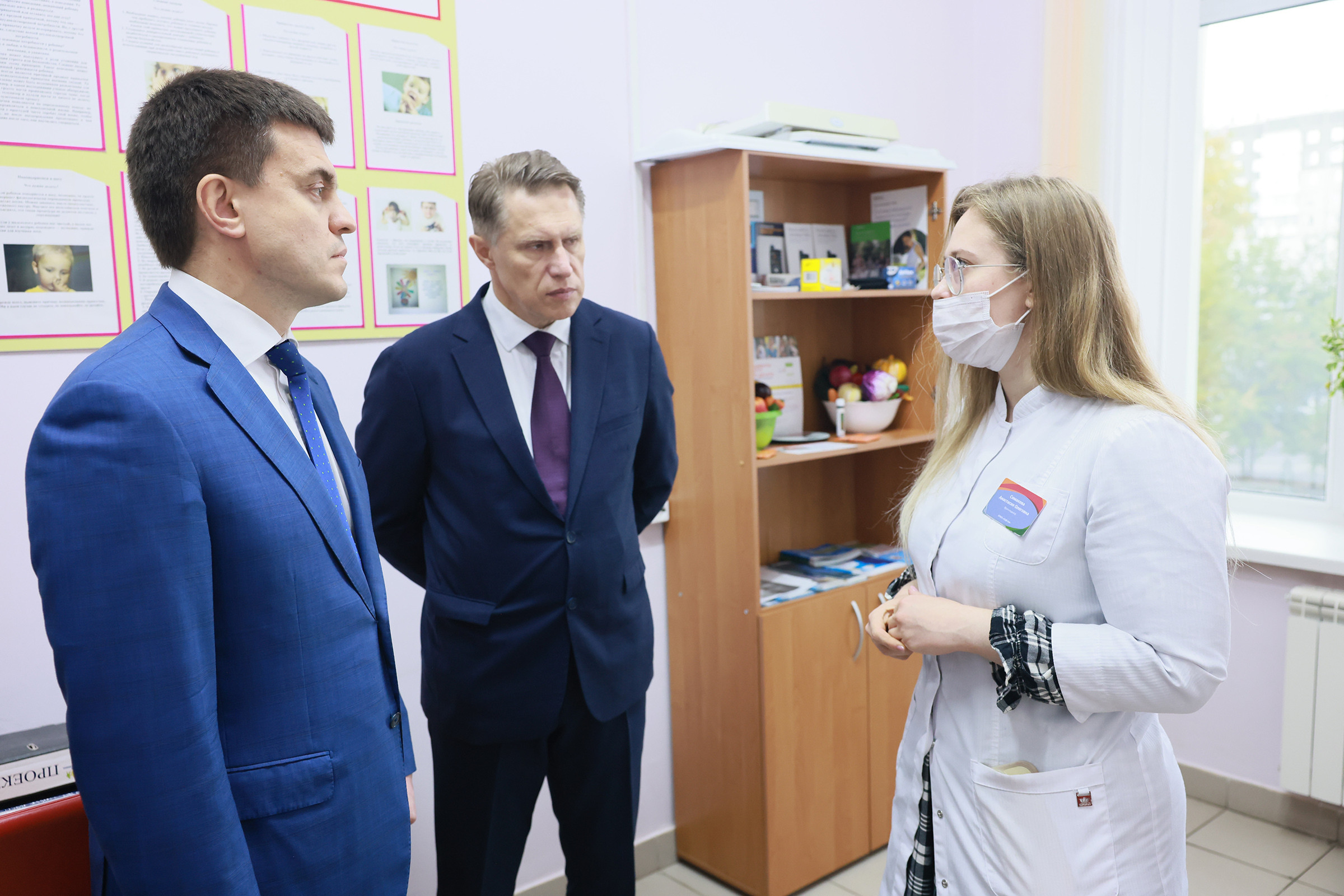 В поликлинике детской больницы №8 в Северном министр здравоохранения поинтересовался принятыми в учреждении практиками вакцинации и профилактических осмотров. Также он проверил отделения иммунопрофилактики и лечебной физкультуры.