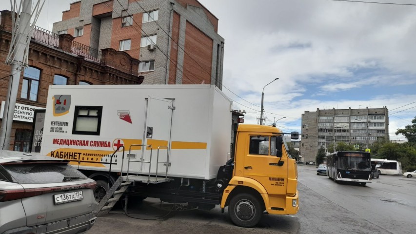 В Красноярске на Красной площади возле здания № 17 начал работать передвижной флюорограф,