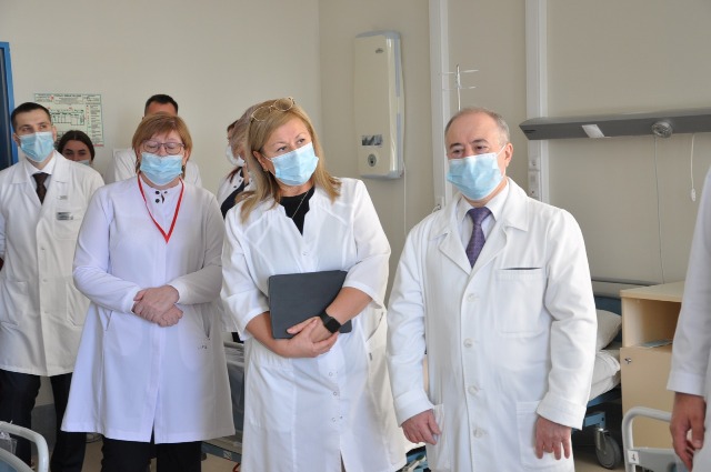 Завершил рабочую группу обход отделения онкогинекологии, в котором проходят лечение 38 пациенток с раком эндометрия, яичников и шейки матки. В отделении широко используют метод биопсии сторожевых лимфоузлов при различных локализациях злокачественных новообразований, что позволяет сократить пребывание пациенток в стационаре, сокращает объём оперативного вмешательства и существенно облегчает процесс реабилитации.