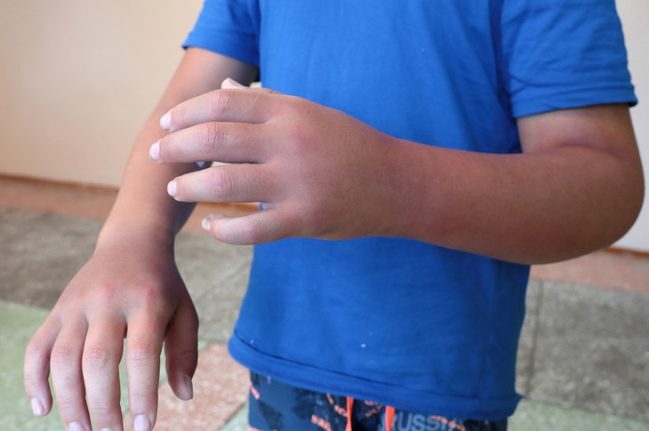 Двух детей гадюки укусили за руки. Один ребенок поскользнулся и упал прямо на змею, и та от испуга укусила его два раза – в указательный и средний пальцы.