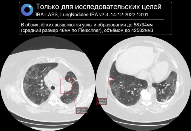Для исследования специалисты использовали 10500 КТ-снимков. КТ-снимки органов грудной клетки деперсонализировались и направлялись на платформу IRA-LABS. Система осуществляла анализ полученных изображений: при обнаружении очаговых образований в легком указывалась их локализация, размер и объем, после чего снимки направлялись врачам-рентгенологам красноярского онкологического диспансера для анализа полученных результатов.