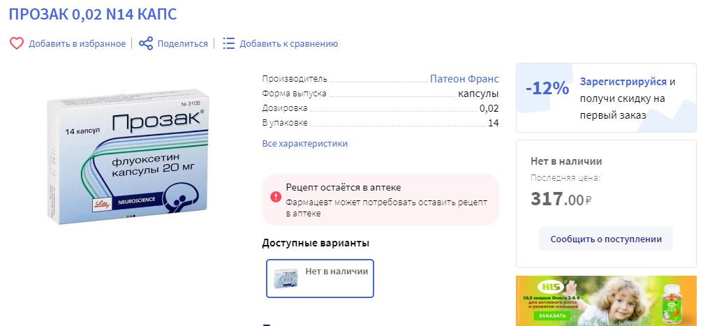 Как пишет портал "РБК" , сейчас практически невозможно найти "Прозак", выпускаемый фирмой Eli Lilly (США). Данная компания в марте объявила об уходе с российского рынка, после чего права на поставку препаратов передали швейцарскому дистрибьютору Swixx Biopharma. Эксперты считают, что дефицит мог возникнуть из-за технических причин, связанных с перезаключением договоров, внесением изменений в регистрационные удостоверения и логистикой.