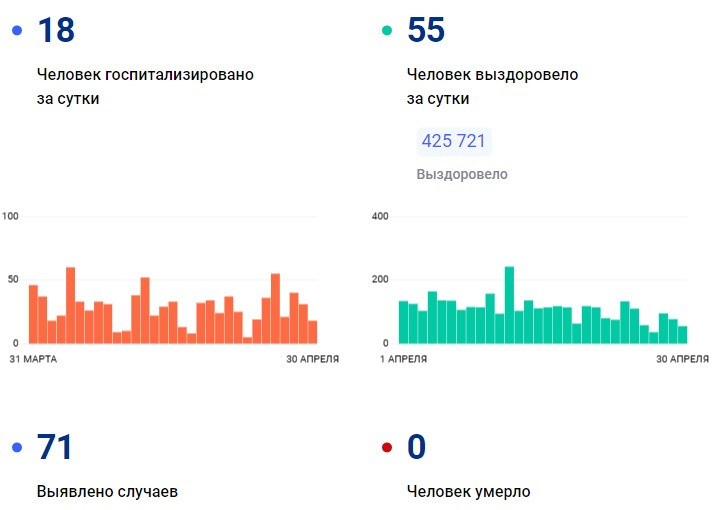 За всё время зафиксировано 438 254 подтверждённых диагнозов (+71 за сутки)