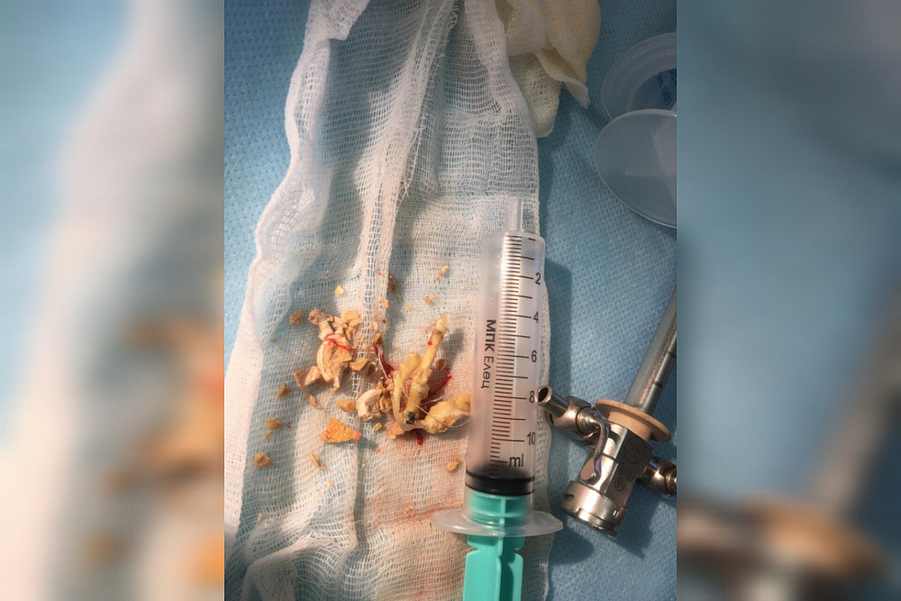Спустя 2 недели после родоразрешения наши специалисты провели оптическую механическую цистолитотрипсию (удаление камней из мочевого пузыря путём их раздробления). В результате проведенной операции камень из полости мочевого пузыря был удалён, а ядром камня оказалась гинекологическая спираль, установленная пациентке 7 лет назад.