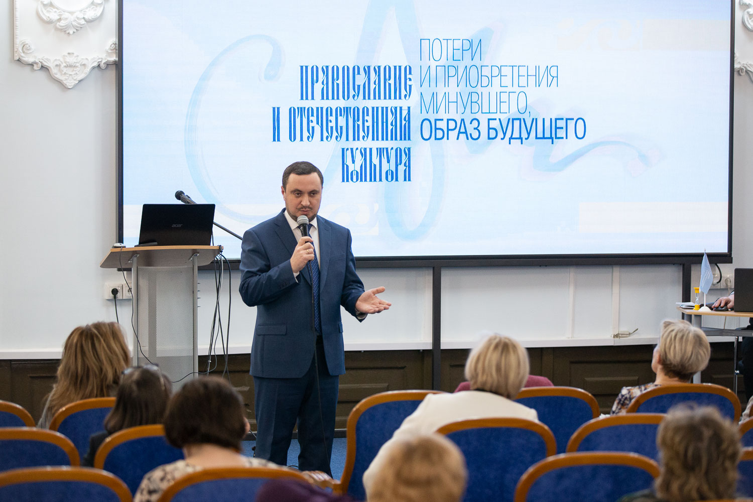 Весь день в образовательном учреждении проходила Межрегиональная научно-практическая конференция — работали секции педагогов профессионального образования, классных руководителей «Реализация социокультурного воспитательного потенциала классного руководства», педагогов дошкольных образовательных учреждений, а также состоялись проблемный симпозиум «Взаимодействие региональной системы образования и Русской Православной Церкви в решении задач развития социокультурных практик воспитания» и мастерская учителей предметных областей ОРКСЭ и ОДНКНР.