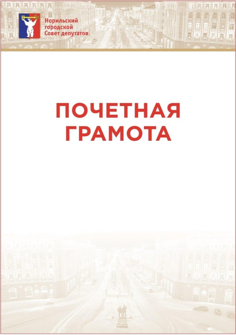 Еще одно изменение, которое планируется внести в положение о наградной политике, касается внешнего вида благодарственных писем и почетных грамот Городского Совета – он будет обновлен. В основе предлагаемого дизайна – изображение главной улицы Норильска – Ленинского проспекта. Обе награды выполнены в едином стиле, размер отдельных элементов и предлагаемая цветовая гамма определяют значимость награды ( почетная грамота Городского Совета – золотистый фон с надписью красного цвета, благодарственное письмо Городского Совета – серебристый фон с надписью синего цвета).
