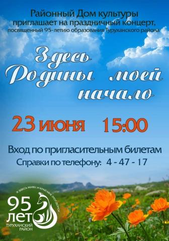 Районный Дом культуры приглашает на праздничный концерт, посвящённый 95 - летию Туруханского района
