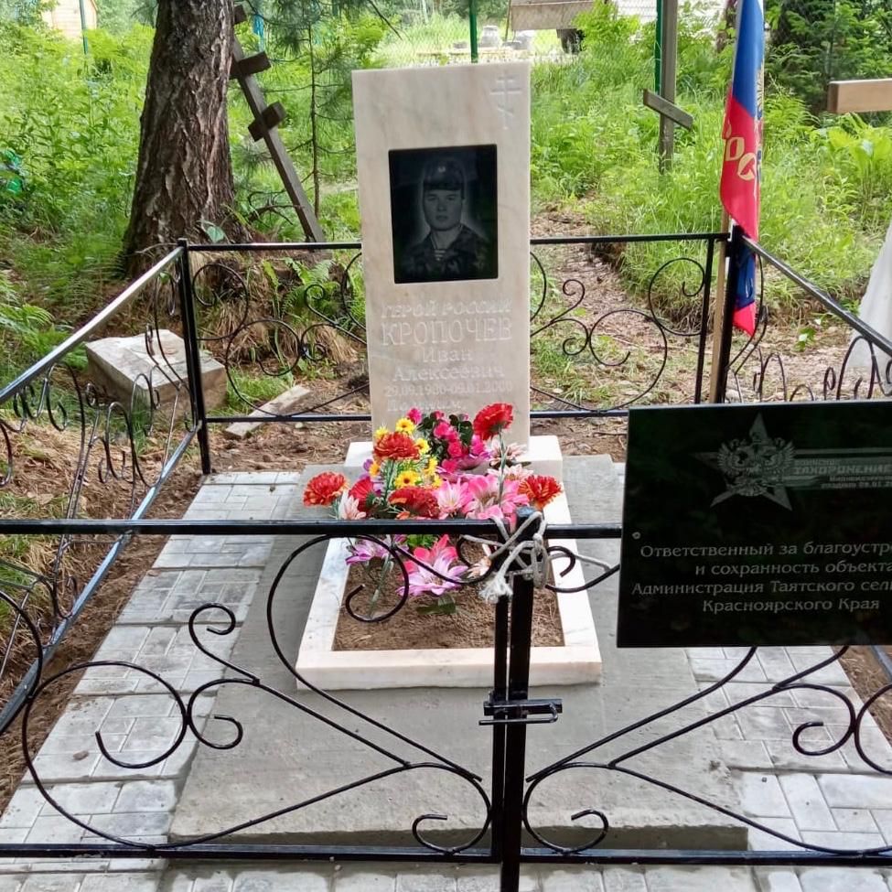 В текущем году на средства из федерального и краевого бюджетов в с. Таяты благоустроено одиночное захоронение Героя Российской Федерации Ивана Кропочева, погибшего в Чечне в 2000 году. На могиле Героя заменили памятник, установили ограждение и мемориальный знак, провели работы по укладке тротуарной плитки.